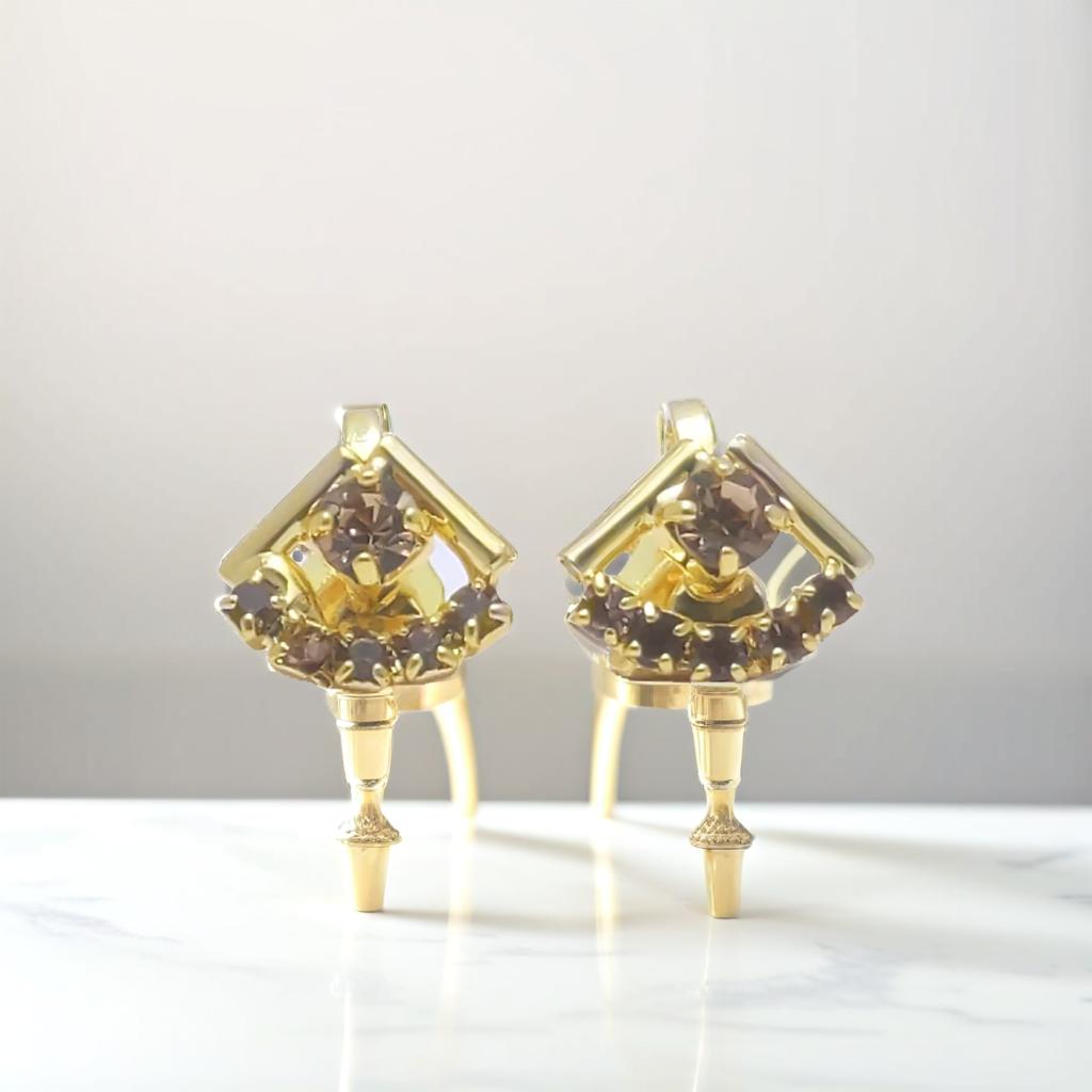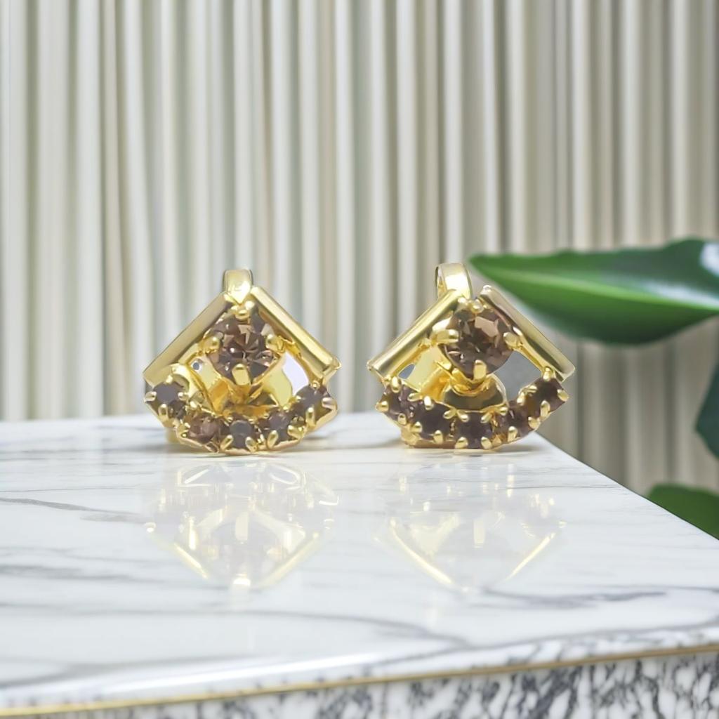 Gold Diamond Clip On Stud Earrings