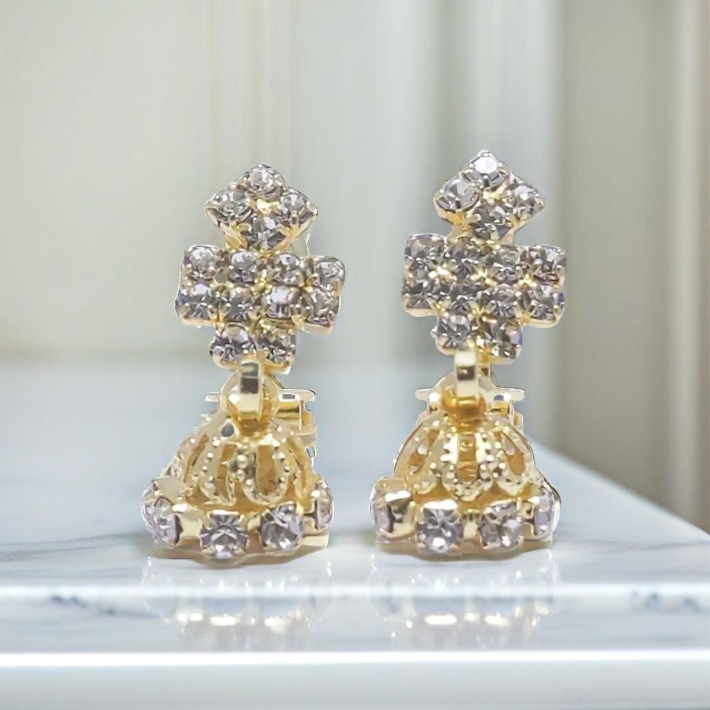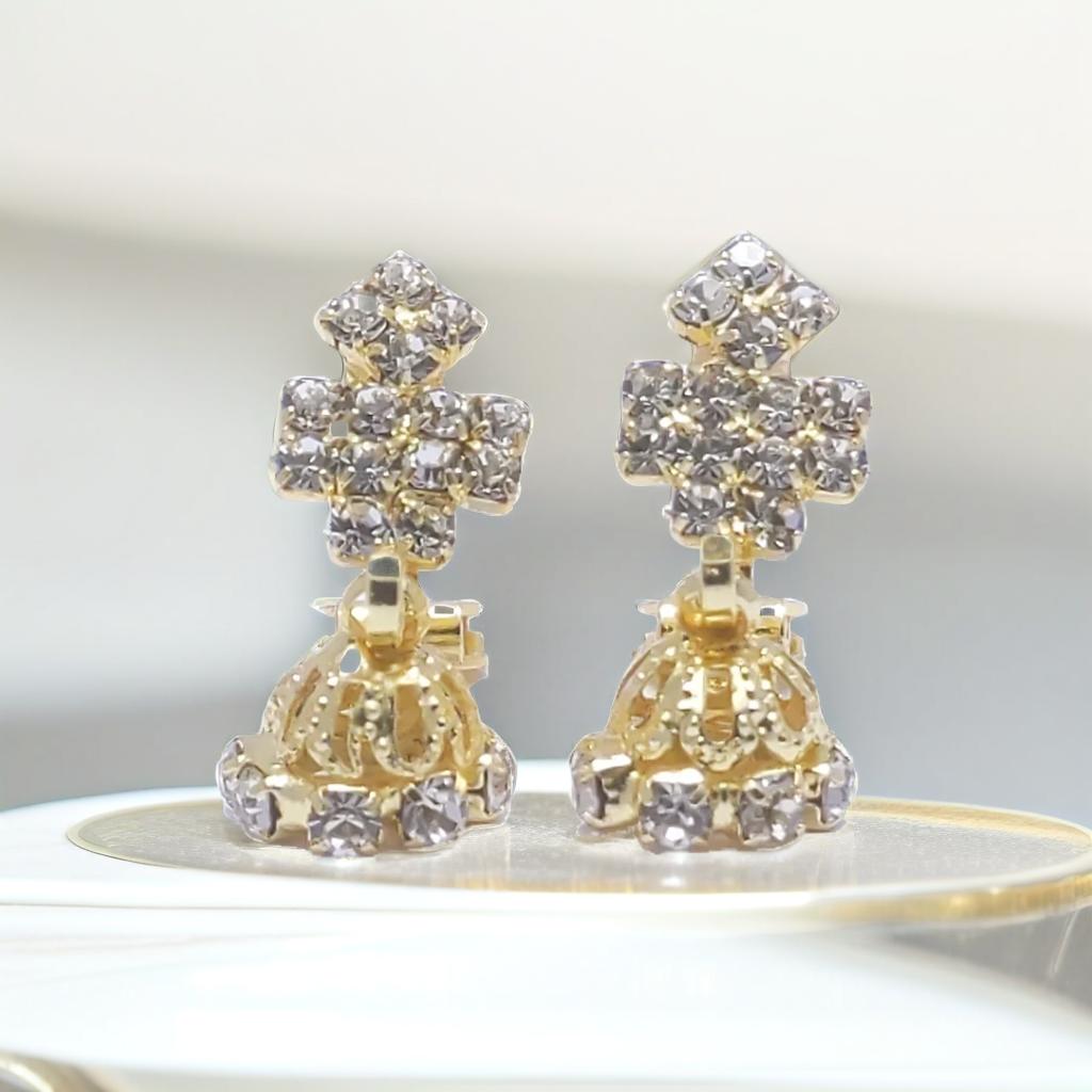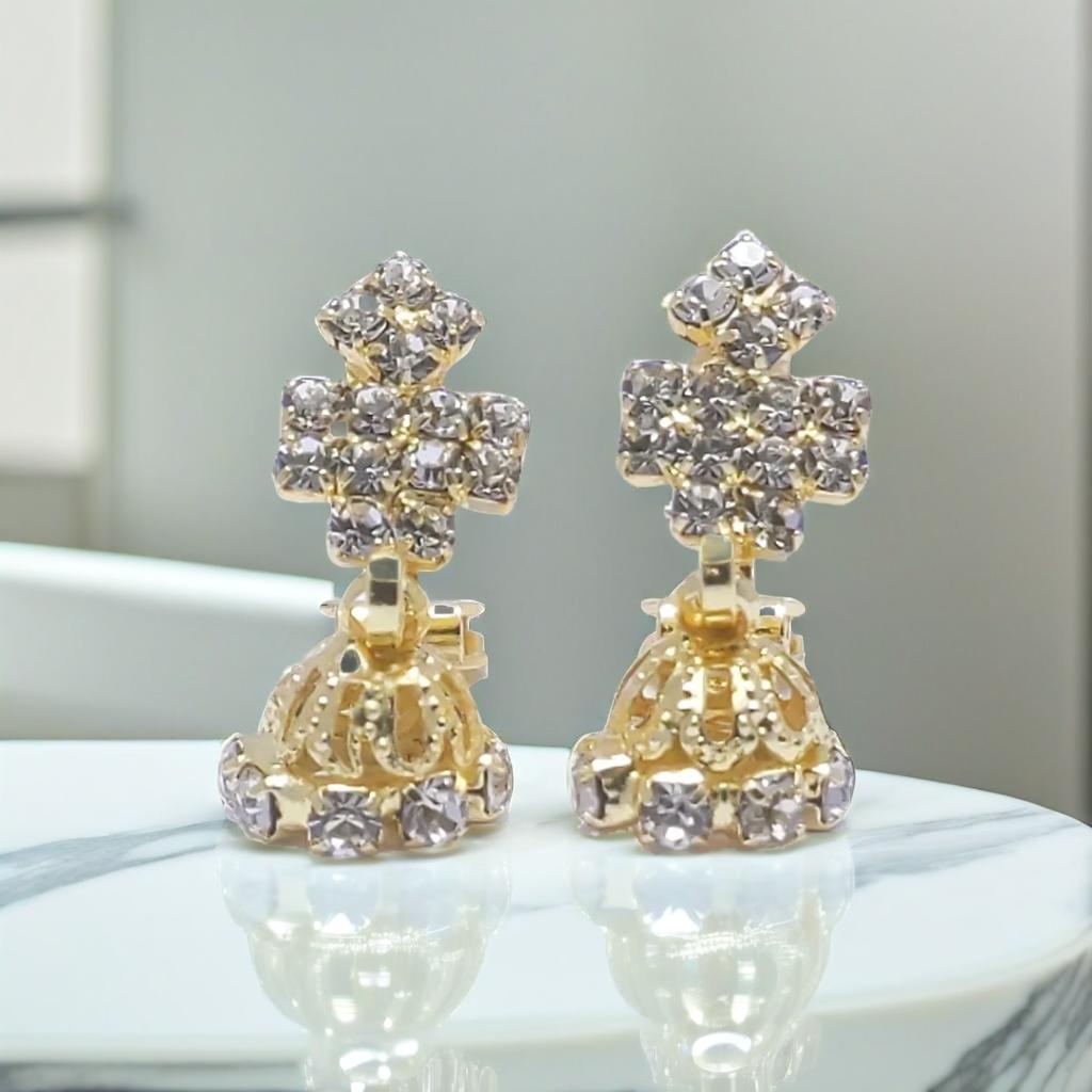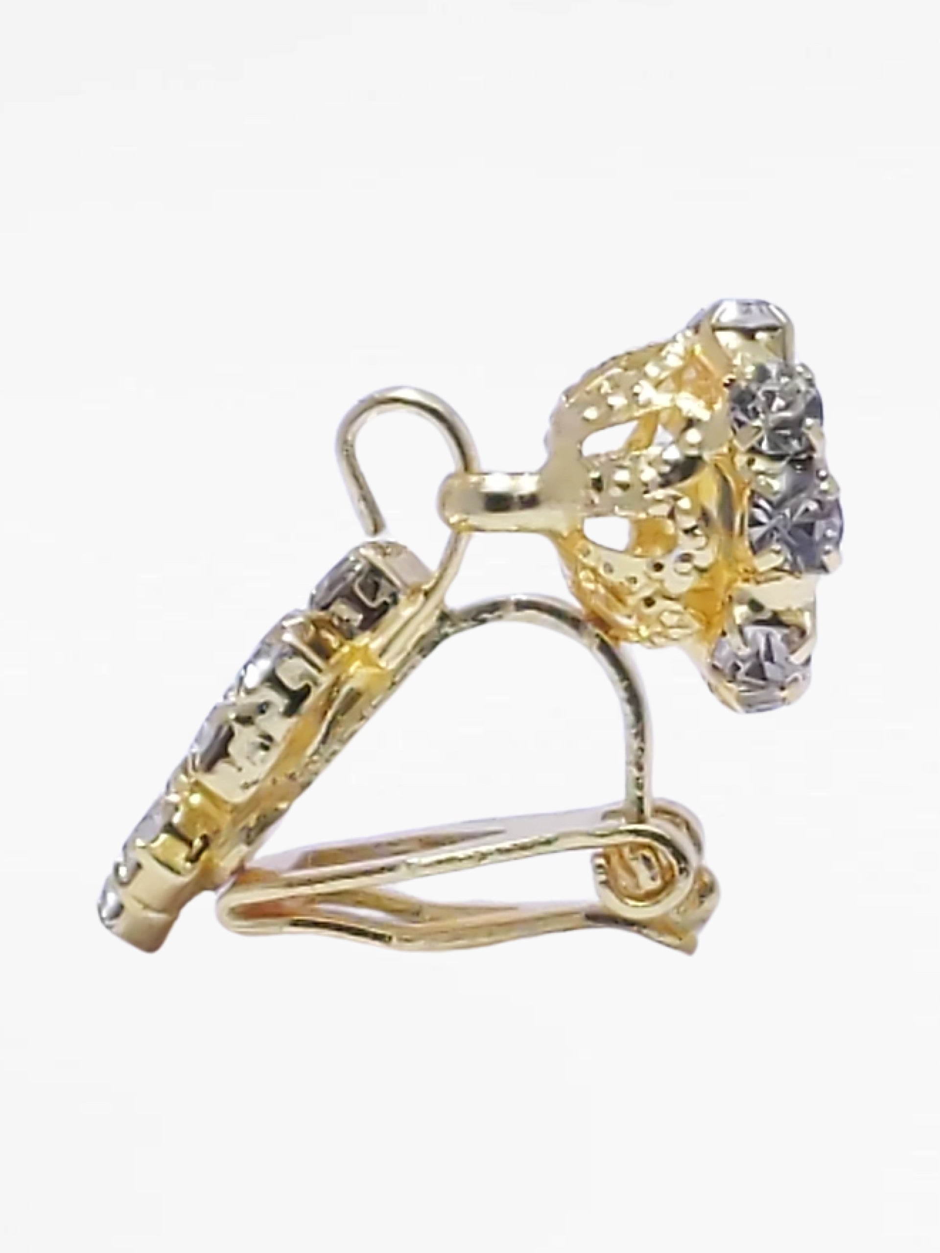 Gold Tiered Diamond Design Stud Clip On Earrings