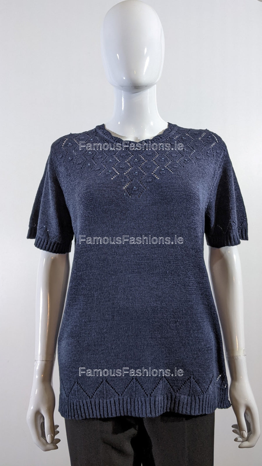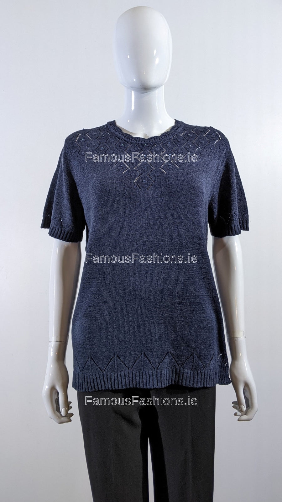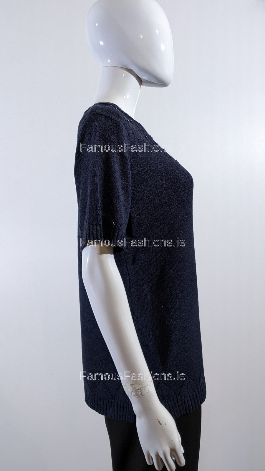 - Navy Beaded Soft Touch Short Sleeve Jumper