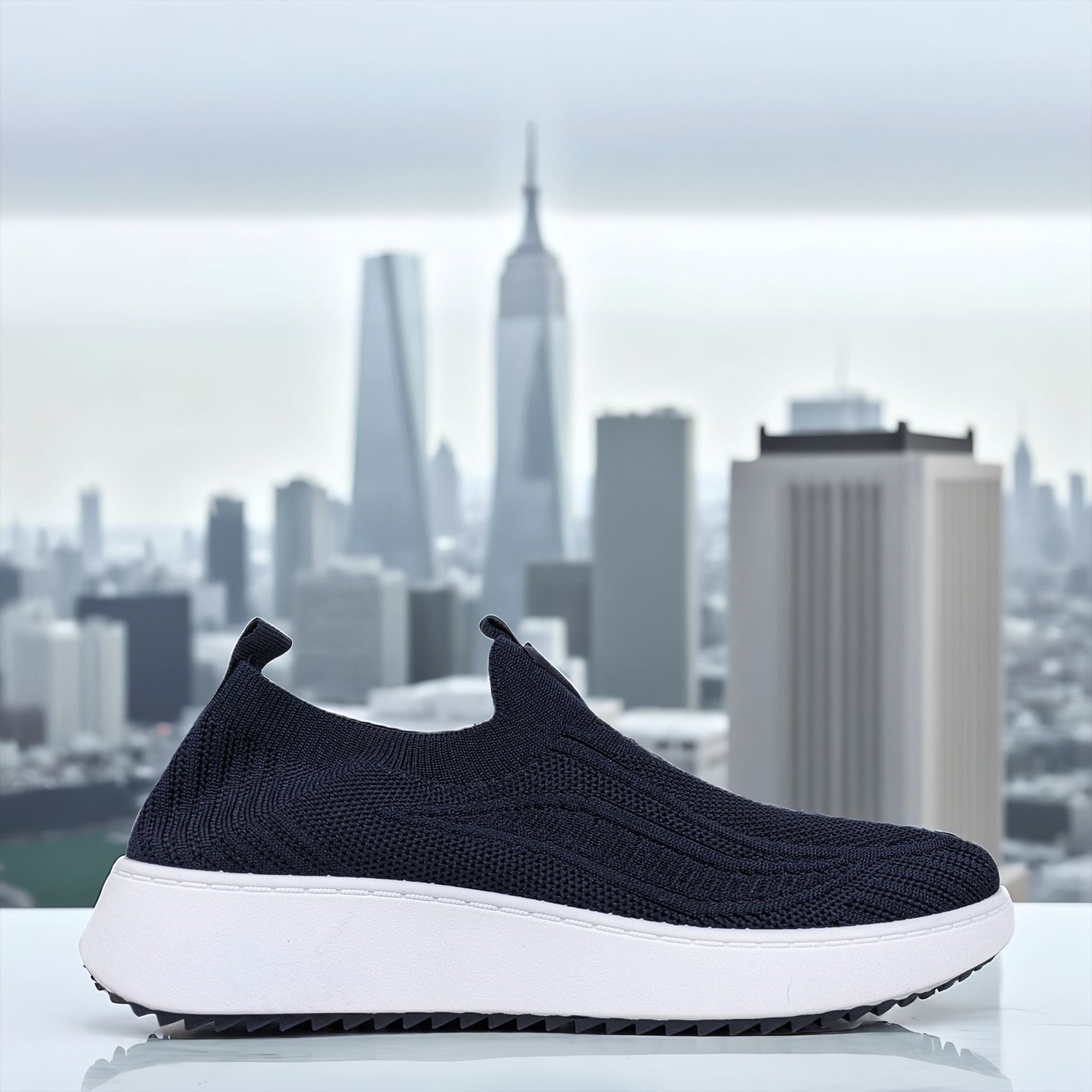 Navy Comfortable Slip On Knit Trainers
