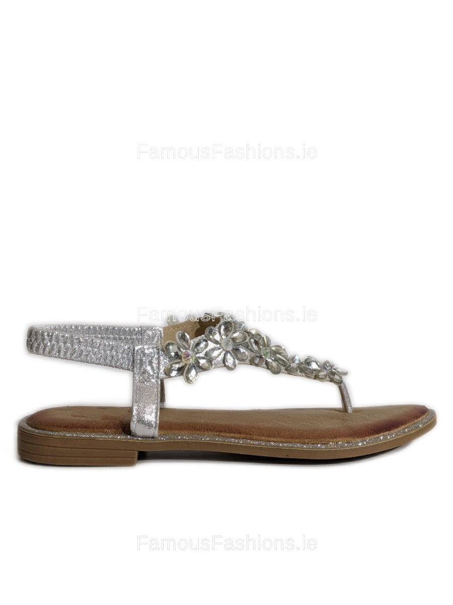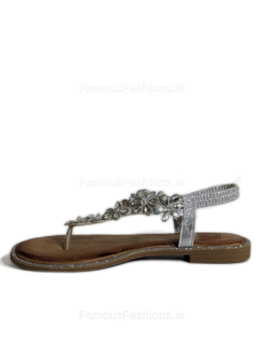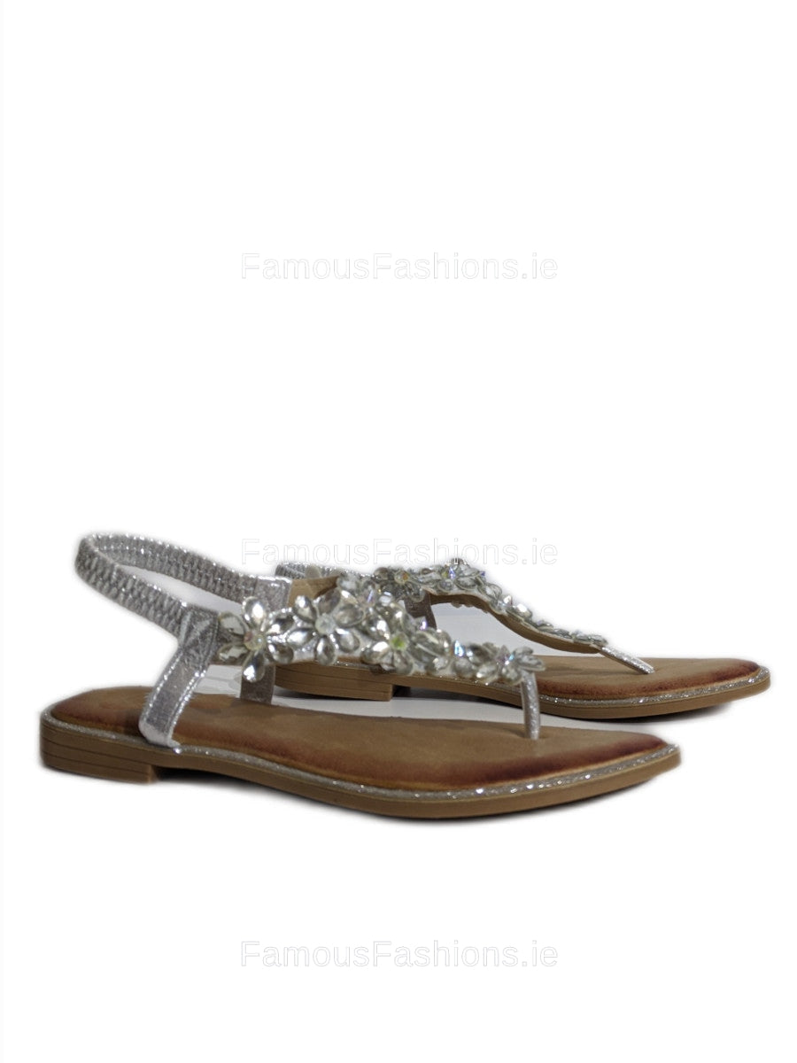 - Silver Diamond Elastic Band Cushion Toe Bar Sandals